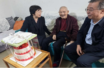 2025年9月3日是新疆大学退休教师安兴民教授101岁生日。当天上午,党委离退休工作部、离退休工作处领导赵菊英、赵箭带着定制的生日蛋糕,专程登门拜访了安兴民教授,送上诚挚的祝福。他们关切地询问了安兴民老师的饮食起居情况,叮嘱他保重身体。安兴民教授和家属非常高兴,对学校的关怀表示衷心感谢。